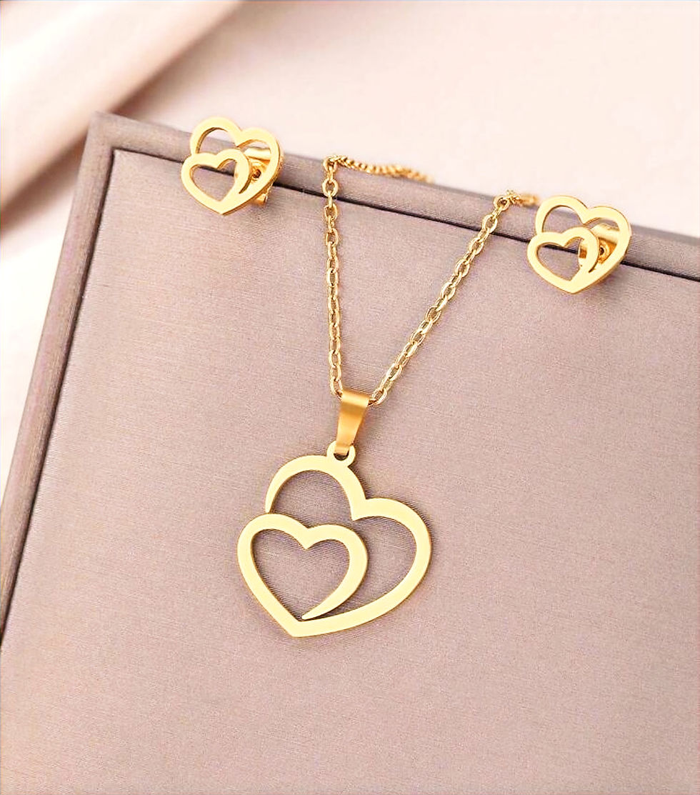 LCSETEN-052520 - Set Heart Earrings & Silver colored Necklace